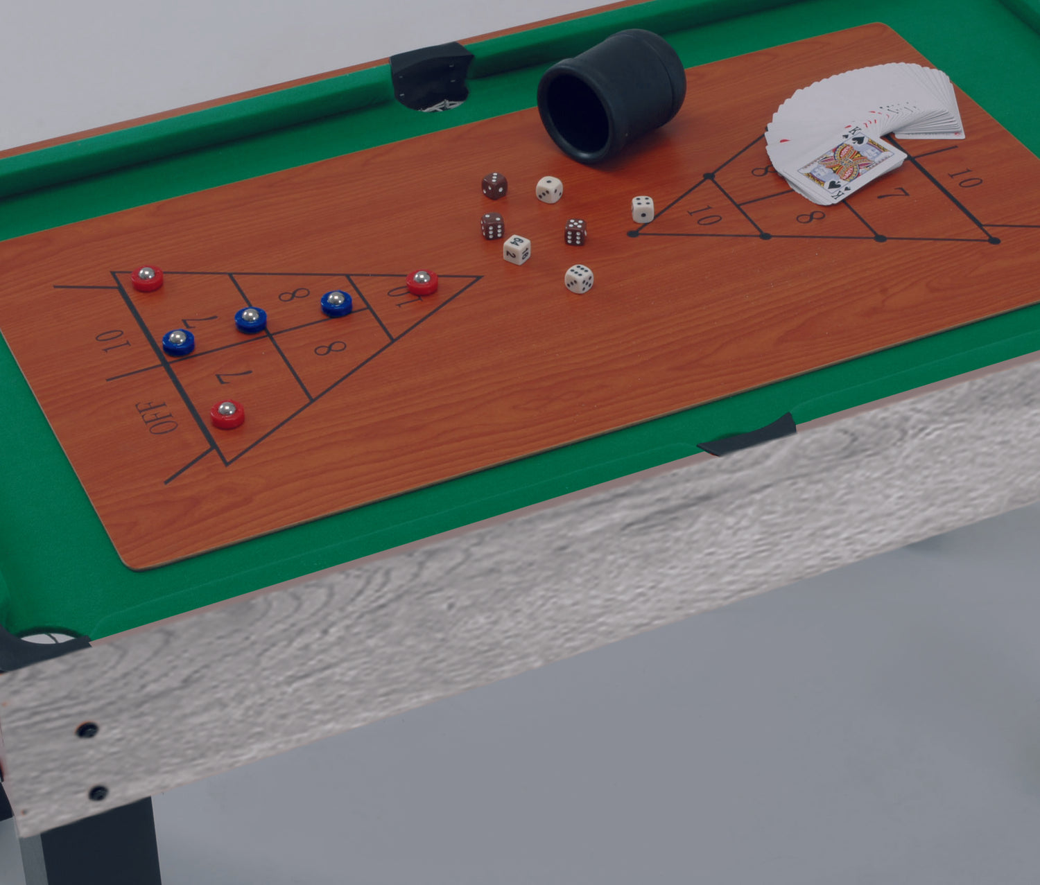 Piano di gioco in MDF ricoperto di panno color verde classico.