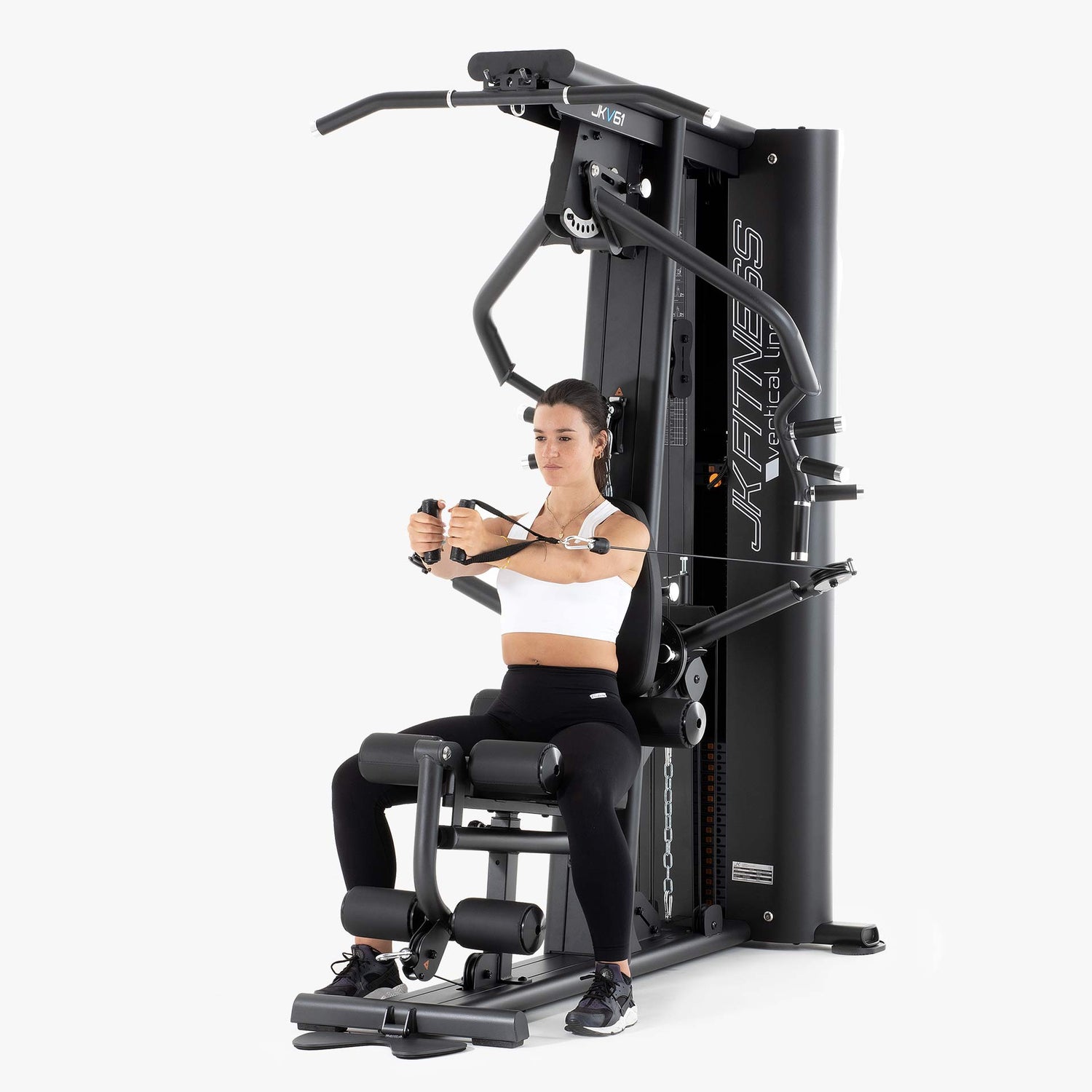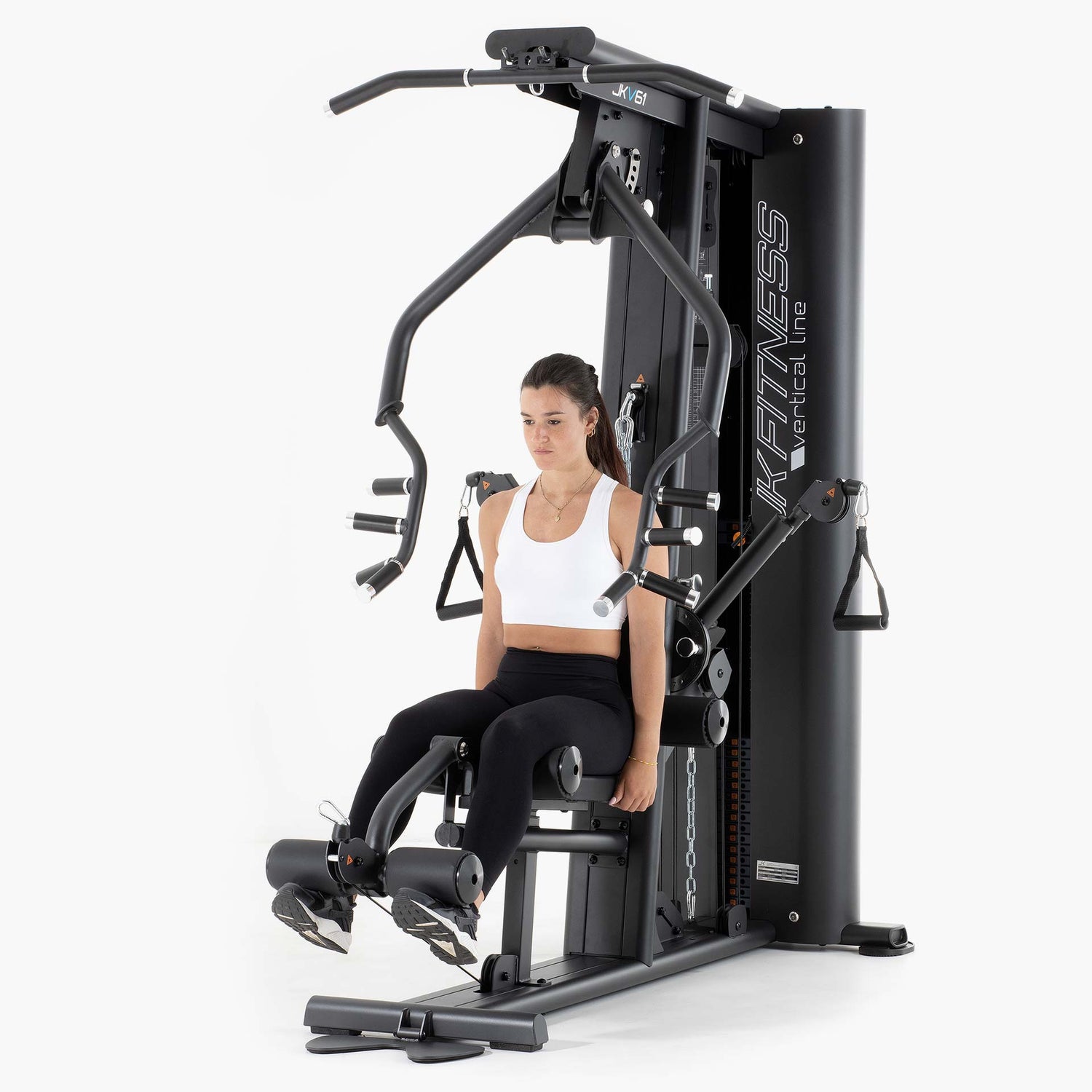 La stazione multifunzione JK V61 è l’attrezzo di punta della gamma JK fitness nel settore vertical fitness. Nata dall’esigenza di avere una multigym compatta ma prestazionale, adatta sia all’uso collettivo che per ambienti domestici; le sue caratteristiche l’hanno proiettata direttamente ai vertici del segmento di mercato. La stazione multifunzione JK V61 è un attrezzo dedicato ad ambienti collettivi, piccoli studi Personal Training, palestre di hotel o per chi desidera la massima qualità dentro casa sua.