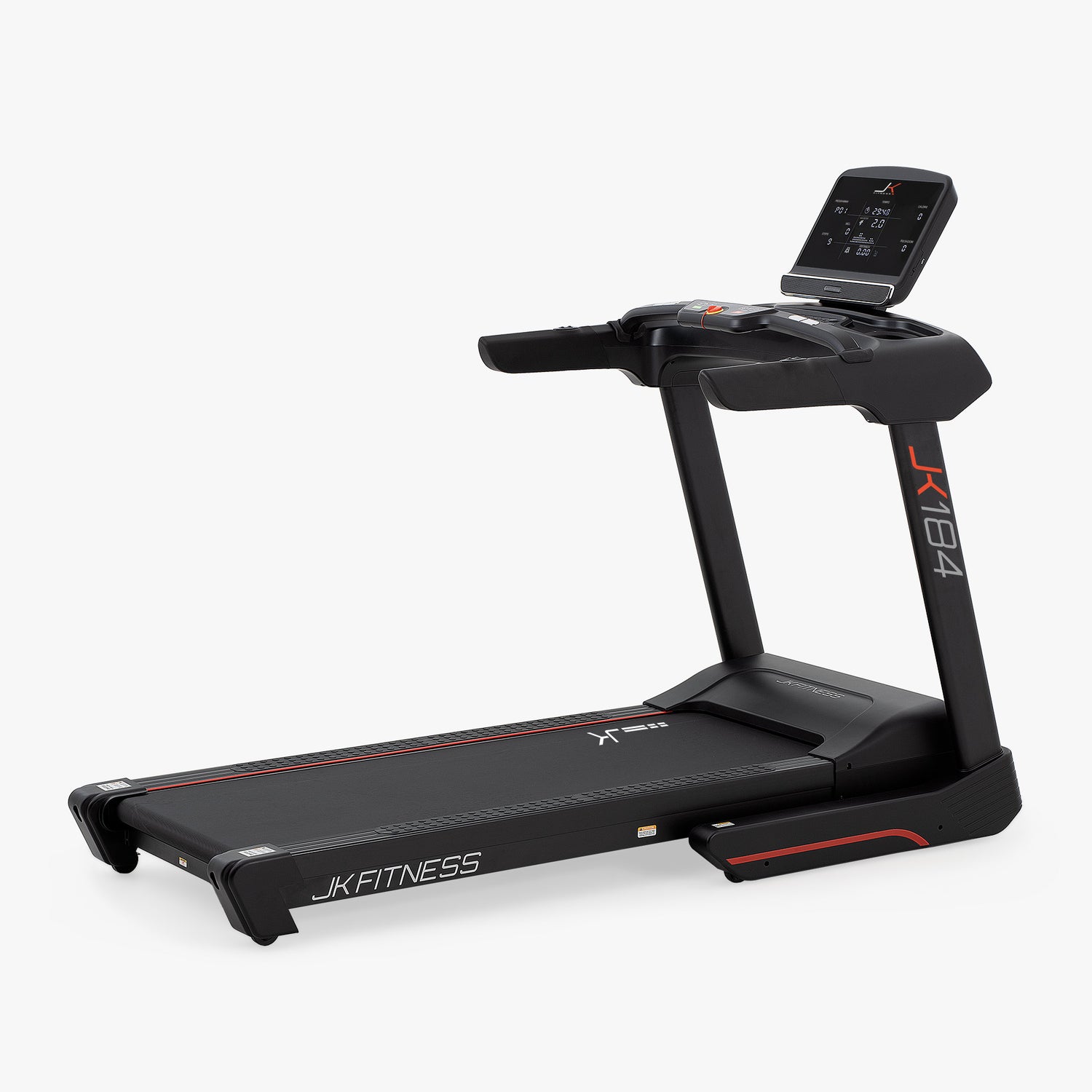 Il nuovo tapis roulant JK 184 entra di diritto ai vertici della gamma home fitness migliorando le caratteristiche tecniche, rispetto alla gamma precedente, il tutto inserito in un contesto più moderno ed elegante.