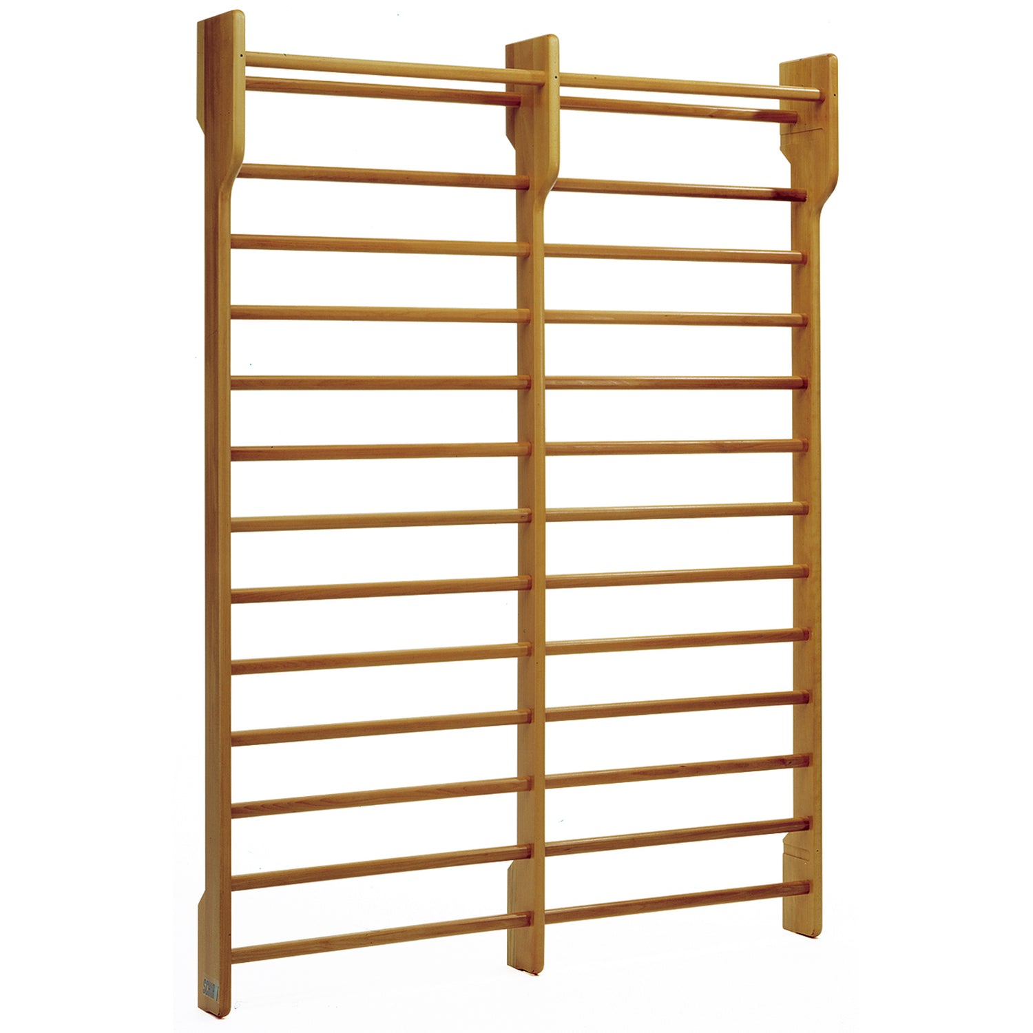 ART 5567 SPALLIERA FAGGIO CLUB 2 CAMPATE In faggio, spalle sagomate in massello di faggio spessore mm 30, n° 14 pioli in faggio sez ovale mm 40x30, verniciatura al naturale, pioli superiori uno sporgente e l’altro rientrante, attacchi per fissaggio a parete con tasselli, mis cm 180x250 (escluso tasselli).