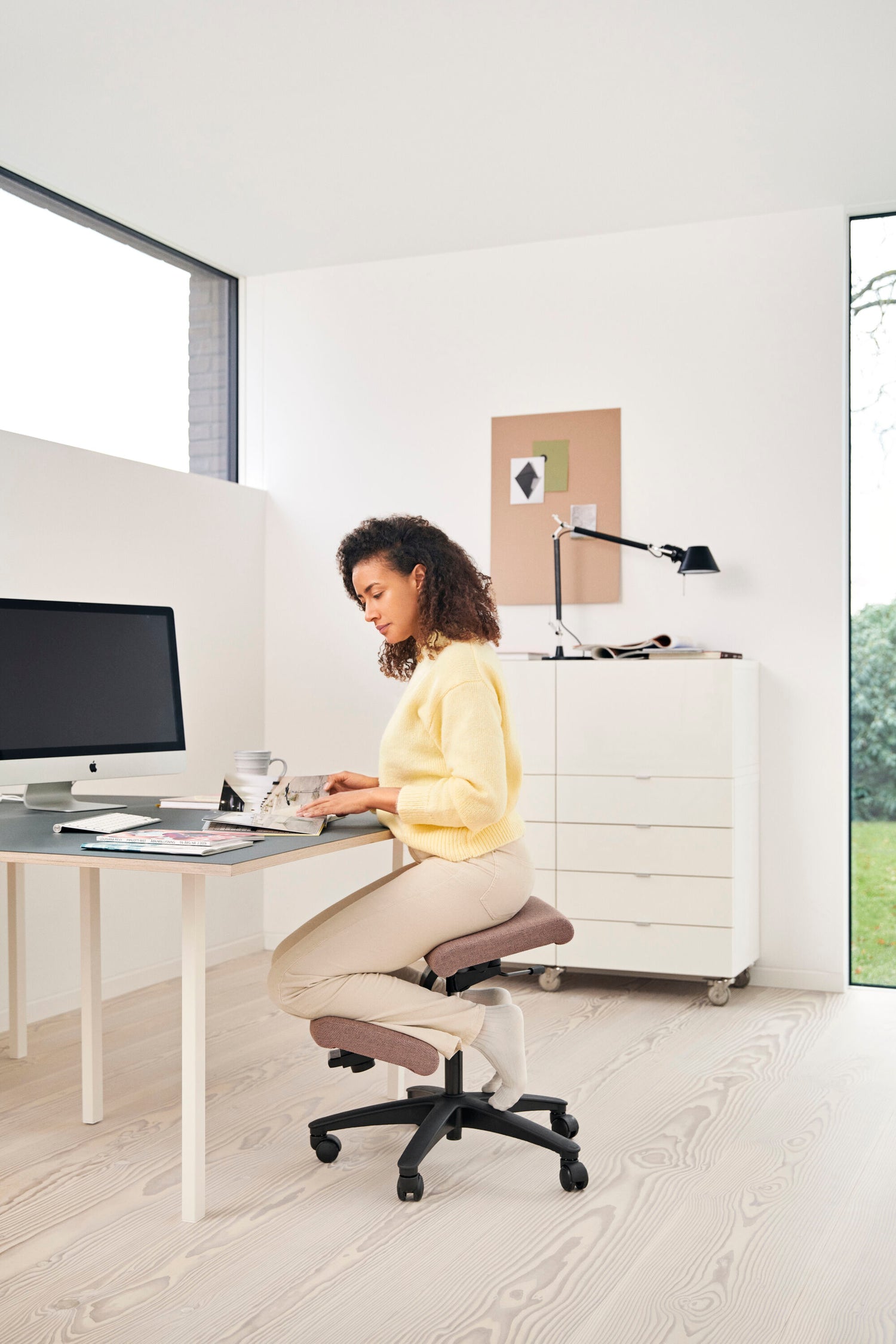 Wing™ è l’eccezione della collezione Varier, in quanto è l’unica sedia con appoggio delle ginocchia, su ruote. Wing™ è molte cose in una, è una sedia con appoggio delle ginocchia, ha una base girevole con le ruote, si adatta a qualsiasi superficie e spazio di lavoro. E’ versatilità pura. Wing™ è disponibile con una base a razze nera ed una vasta gamma di tessuti e colori.