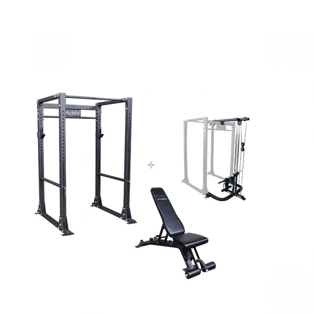 Body-Solid Power Rack GPR400 + GLA400 Lat Machine + SFID425 Bench