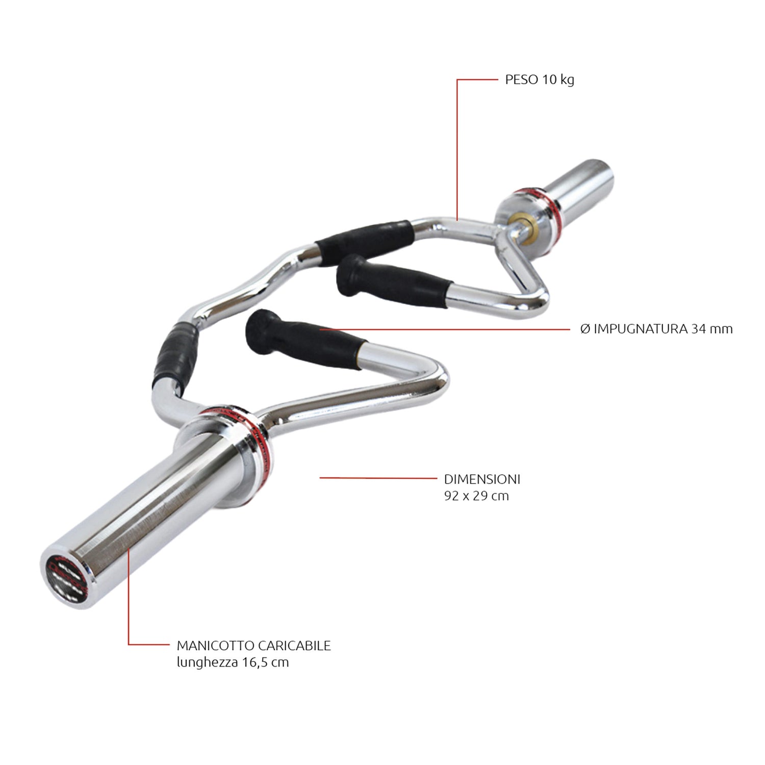 Diamond Multigrip Olympic Barbell 92cm - Max Load 220kg - BMG92