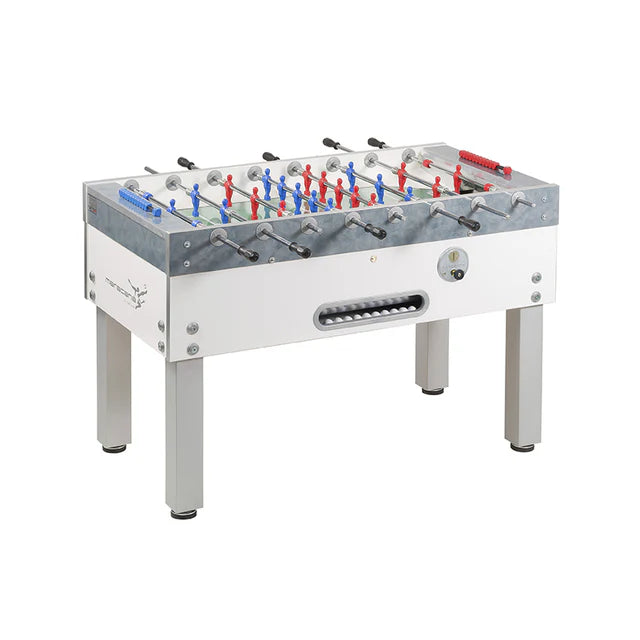 Scopri la linea di calciobalilla ad uso professionale per attività (da uso esterno) con aste rientranti e uscenti e gettoniera (con gettone o monete).