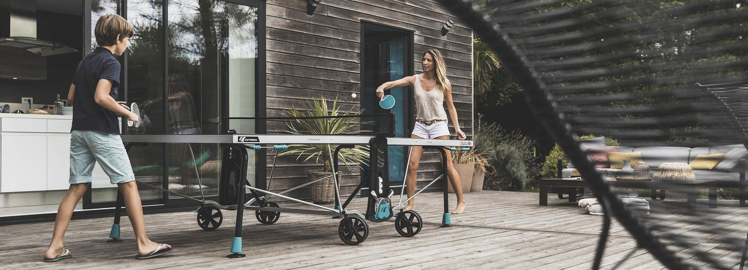 Non tutti i giardini si trovano su un terreno perfettamente piano, ma il tuo tavolo da ping pong deve avere una superficie di gioco piana. Con i suoi pads girevoli situati nella parte inferiore dei piedi, il 300X si adatta a qualsiasi tipo di pavimento. Sistema il tuo tavolo dove preferisci senza compromettere la qualità del tuo gioco. Prato, terra, ghiaia, sabbia: qualunque sia il terreno, il tuo tavolo sa come farcela!